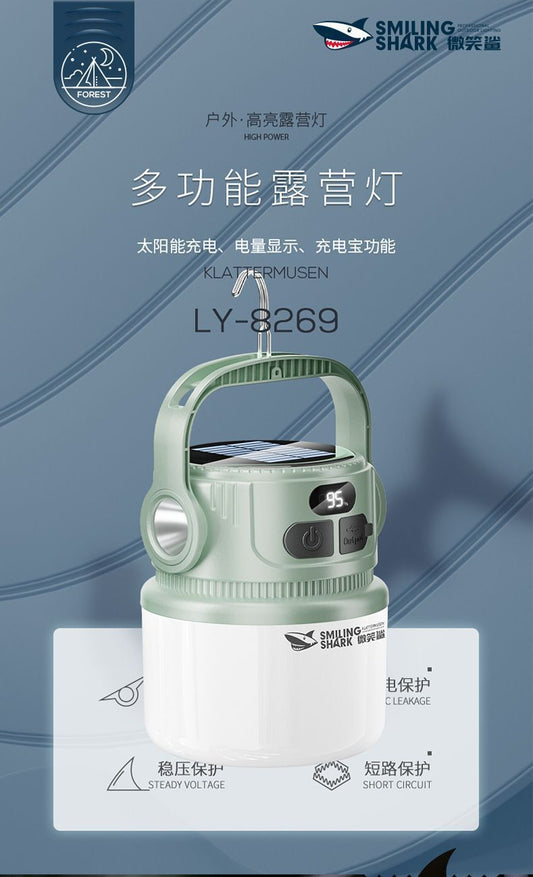 【淡綠色】戶外聚泛雙光露營燈 太陽能充電 USB 營地燈 多功能 帶電顯 露營燈 緊急充電寶 戶外露營 【六檔】亮度調節 便攜 生活防水 加厚防水圈