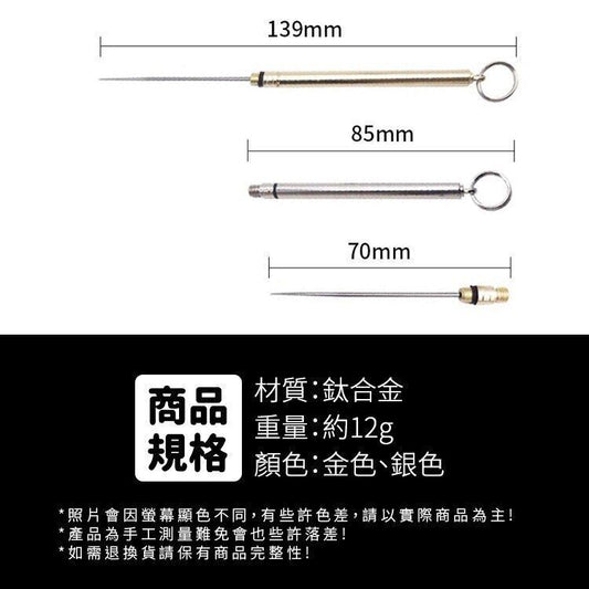 2支 便攜式可重用金屬牙籤 環保可重復使用牙簽 安全物料 鈦合金牙籤 隨身便攜牙簽 環保牙簽 防水戶外水果簽 便攜式家用牙簽 一體式鈦合金牙線(金色+銀色/ 2支套裝)