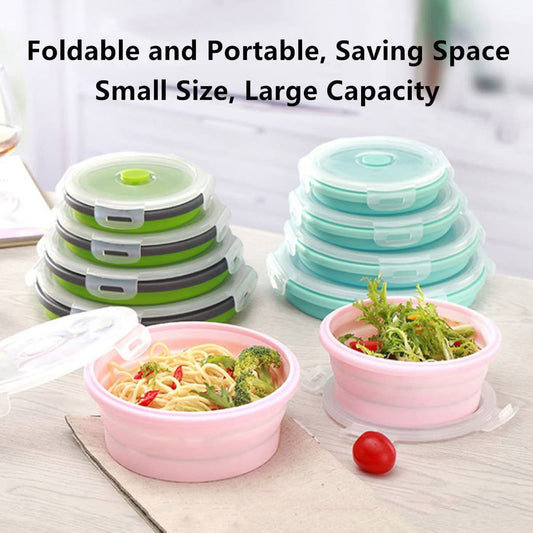 圓形矽膠飯盒 便攜折疊餐盒微波爐便當盒 塑料冰箱午餐盒收納盒-天藍色