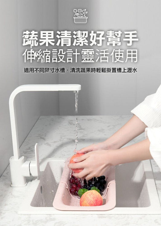 【碗碟瀝水+洗菜】多用途可伸縮瀝水收納架|不同尺寸水槽皆適用|瀝水速乾 家用廚房水槽瀝水籃 碗碟架 餐具瀝水收納架 廚房塑膠洗菜盆 水果清洗 水池置物架(灰色)