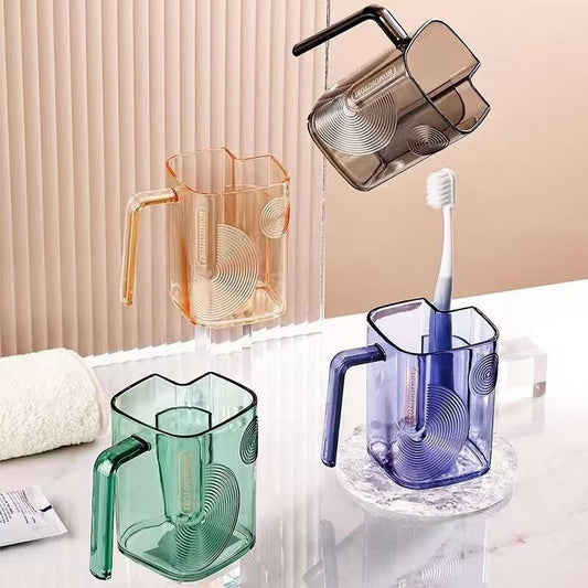 2個 漱口杯 牙刷收納杯 情侶牙刷杯 多功能漱口杯 瀝水牙刷杯 牙刷置物杯 簡約牙刷杯(茶色+綠色 /2款套裝)