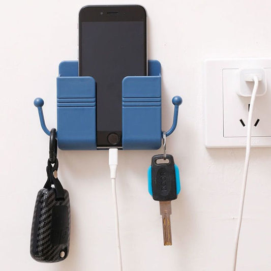 2個 多用途收納盒 遙控器收納盒 多功能收納盒 手機充電壁掛收納 免打孔壁掛收納盒 雜物置物架 客廳壁掛置物架 客廳臥室床頭收納 多用途置物掛架(藍色+綠色/2個)