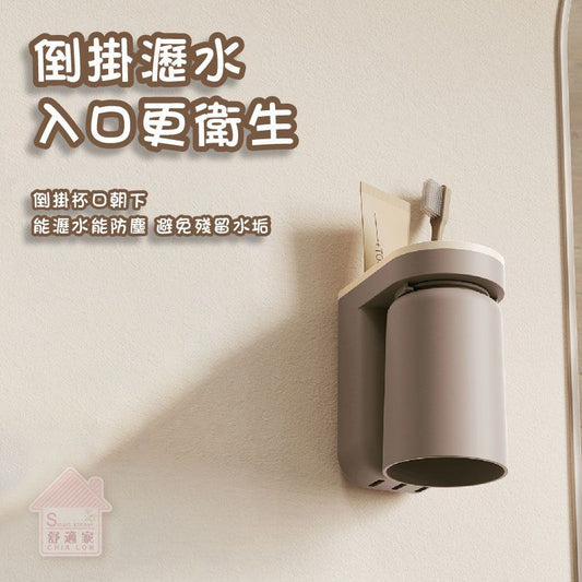 2個 免釘黏貼 壁掛式洗漱杯架 牙刷漱口杯 牙刷杯收納 浴室置物架 牙刷架(米白色+焦糖棕/2個套裝)