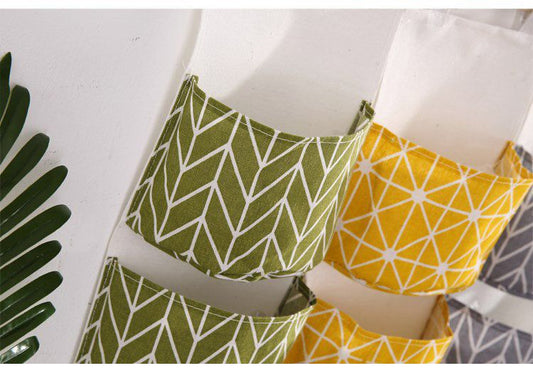 綠色棉麻防水收納掛袋 懸掛式 多層掛兜 布藝門後雜物儲物袋收納袋