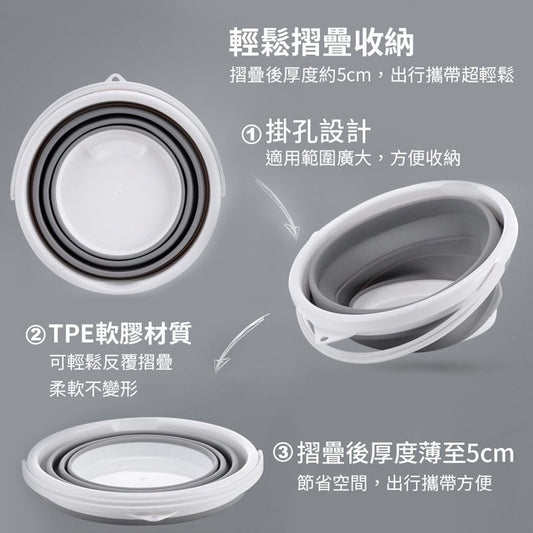 10L 摺疊水桶 洗臉盆 儲水 洗車桶 釣魚桶 折疊 提水桶 伸縮收納水桶 戶外水桶 露營水桶 釣魚折疊水桶(10L/圓形/灰色)