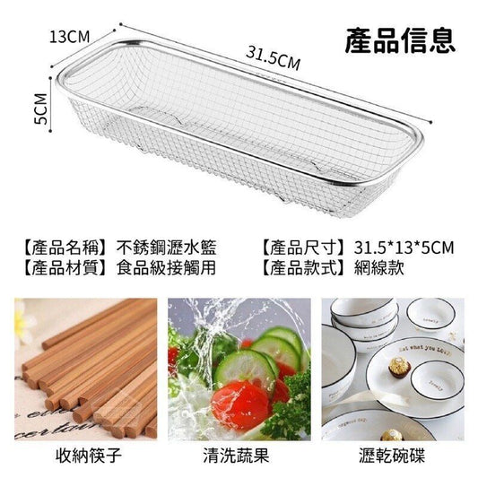 不鏽鋼餐具收納籃瀝水籃 廚房收納架 洗碗機餐具籃 烘碗機筷子籃 筷子籠 筷子架 餐具置物籃 餐具架 筷子收納 餐具瀝水籃 網格餐具籃(長方形) 碗碟架