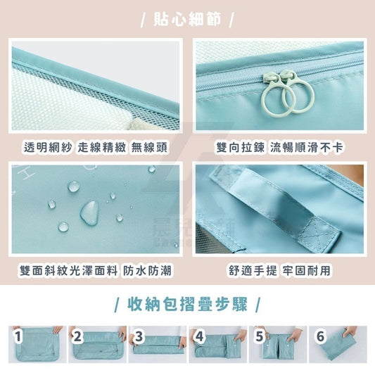 8件組 掛鉤旅行收納袋 鞋袋 衣物收納袋 束口袋 行李收納袋 旅行分裝 掛鈎行李箱收納包(掛鈎/湖藍/八件套)