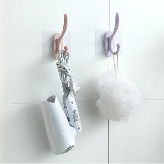 3個無痕掛勾衣帽鉤子免打孔掛衣鉤廚房浴室毛巾鉤衛生間雙鉤掛鉤墻壁掛鉤