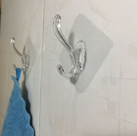 2枚 強力防水無痕掛勾 粘鉤 免打孔透明粘膠掛鉤掛勾掛鉤