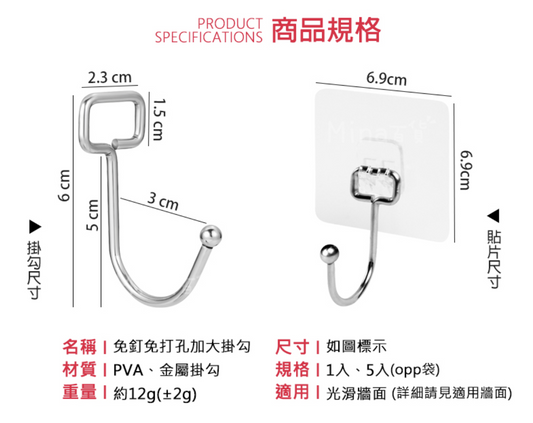 【無痕掛勾】強力掛勾 免釘掛鉤 衣帽掛勾 掛勾 防水掛勾 無痕掛鉤 掛勾貼片 無痕貼 收納 透明無痕貼 時尚強力貼墻壁粘貼無痕貼片粘鉤防水防油廚房單掛勾粘膠免打孔掛勾掛鉤