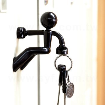 「爬牆仔」磁力掛鉤 雪櫃強磁鐵鑰匙收納掛鉤 無痕家居卡通爬牆小人留言板磁性手錶車匙萬字夾裝飾冰箱貼(黑色)
