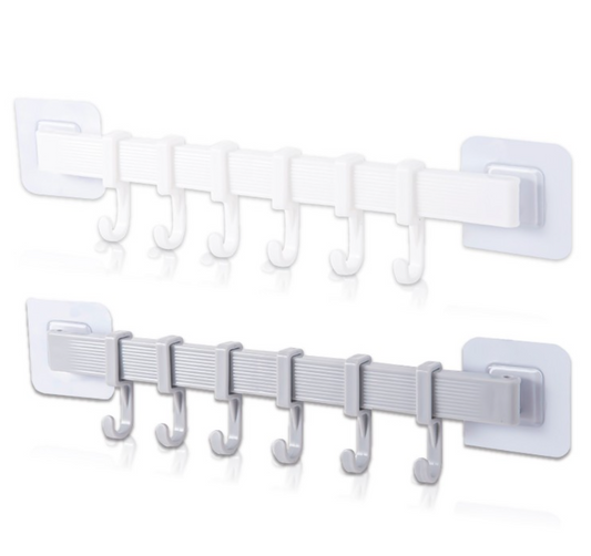 六連掛勾收納 門後收納 廚房 浴室 壁掛 免釘 掛勾 掛鉤 滑動式掛勾架 黏貼掛鉤 掛鉤