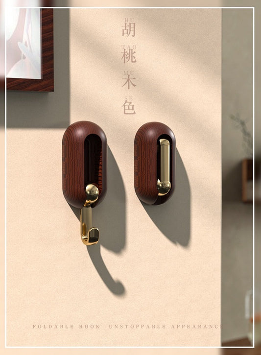 仿木紋萬能掛鉤 免打孔可旋轉可折疊掛勾 玄關鞋櫃置物架鑰匙辦公室門後掛衣服免釘鉤 強力粘膠牆壁掛牆上承重無痕貼鉤牆面免打孔鉤子粘鉤(4個裝;胡桃木色)