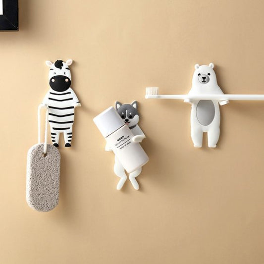 (一套4件) 可愛動物造型掛勾廚怎浴室收納無痕掛牆掛鎖匙掛牙刷掛毛巾雨傘掛鉤