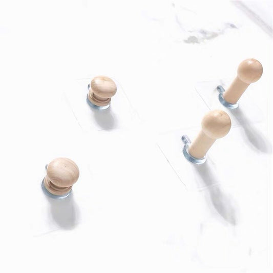2x 北歐實木無痕掛鉤-原木色短蘑菇款