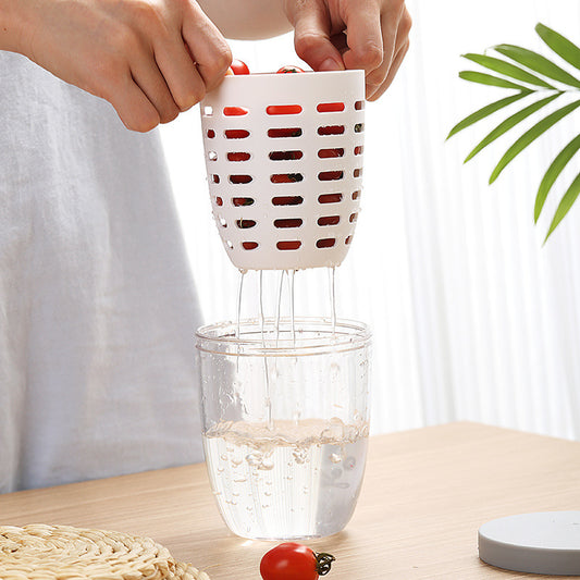 可瀝水果杯帶叉子便攜式野餐盒大容量收納捅塑料杯 藍色