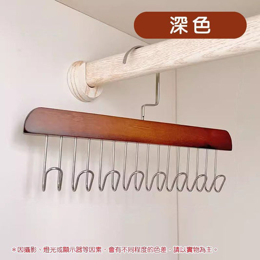 多功能實木八鈎掛架 木質掛勾衣架 吊帶衣架 內衣架 帽子收納架 掛勾架 木衣架(深色咖啡色/8勾/1個)