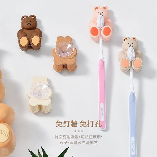 小熊牙刷架 可愛牙刷支架 吸盤牙刷架 電動牙刷架 牙刷座 牙刷收納架 免打孔牙刷架免打孔掛壁牙刷架(巧克力熊)