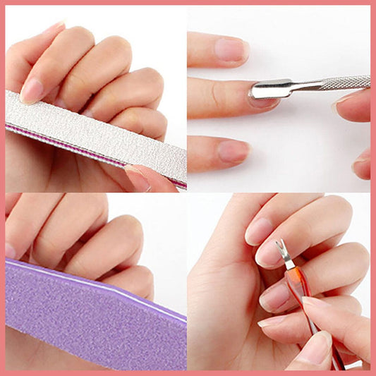 美甲 家用修甲 磨甲去死皮工具8件套連收納盒 指甲營養液 鋼推 死皮叉 去除倒刺 修甲形
