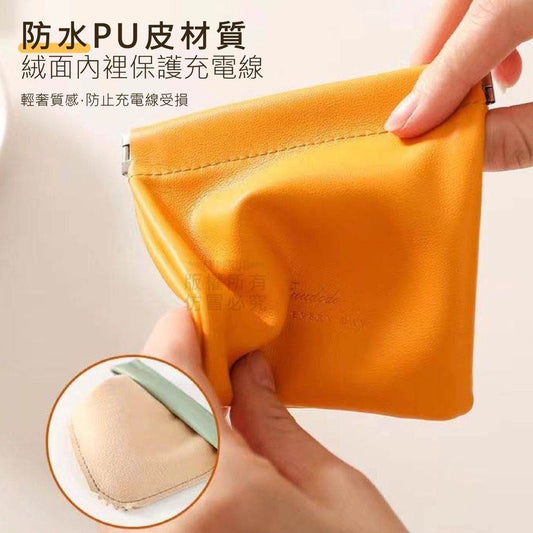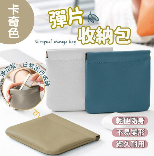 自動閉合收納包 優質皮革 觸感柔軟 防塵防潑水 體積輕巧 便攜小物收納袋 PU小包(焦糖色)