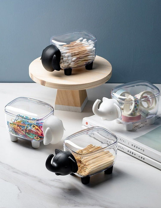 透明小羊防塵收納盒|多用途文具/卸妝棉/牙籤牙簽/萬字夾迴紋針/棉花球/棉花棒/長尾夾子/紙膠帶/雜物整理盒|透明可視 可愛綿羊化妝盒 桌上及電線收納 儲物盒(黑色)