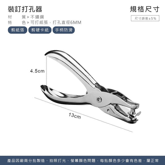 手握式金屬打孔機 裝訂工具 打孔器 打洞機 打洞器 打孔機 打孔鉗 單孔 活頁文具(孔徑6mm/新舊包裝隨機)
