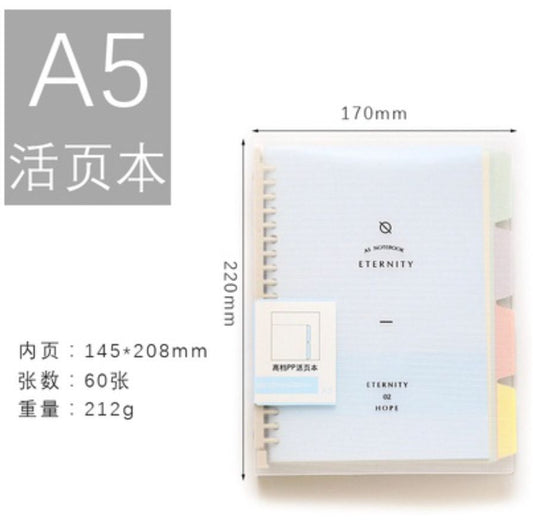 A5活頁簿 空白 康奈爾 筆記本 小清新 素色 20孔 手帳 學生必備 大容量 A5果凍色20孔 藍色