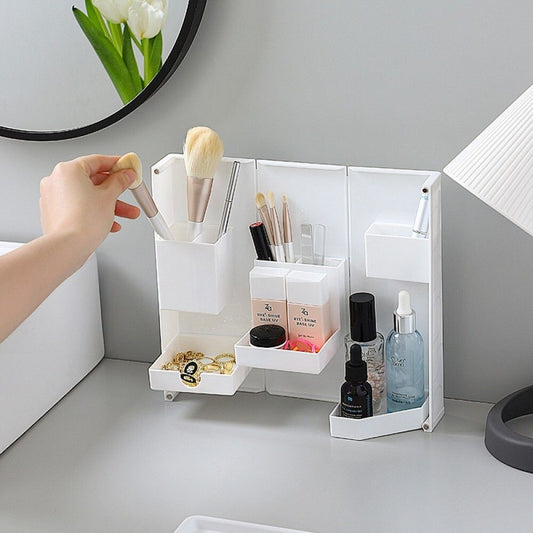可折疊 文具雜物分格收納盒|活用空間 多功能磁吸儲物盒 日式筆盒 筆筒 學生/小朋友/兒童/Office/辦公室/上班族桌面置物收納筒 書桌書檯雜物架 化妝品分層收納架(白色)