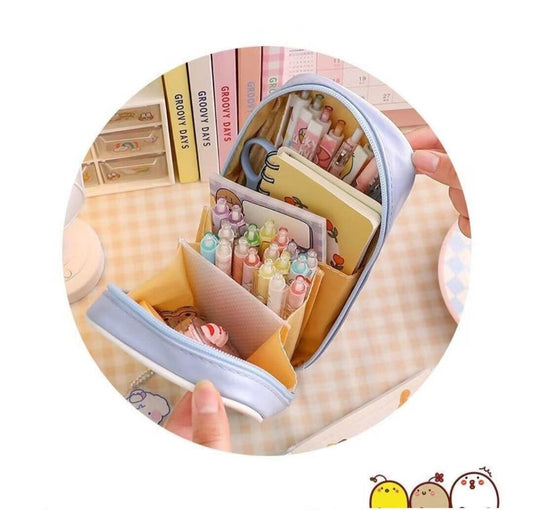 新款多層透明筆袋 分隔多層 整理有條 收納量高 - 粉紅色兔兔