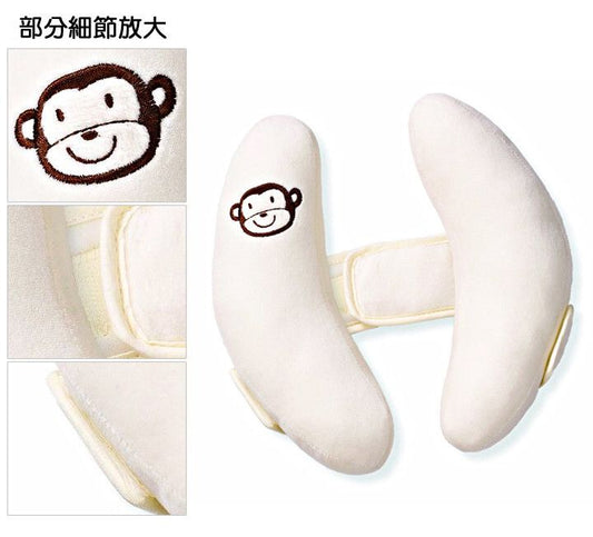 【支撐頭部】嬰兒護頭枕 汽車安全座椅/BB推車適用| 可按頭圍調節間距 U型護頸椎枕|旅行外出睡覺防偏頭 幼兒魔術貼靠枕 手推車枕 BB新生兒車用車載座椅頭部固定枕(象牙白)