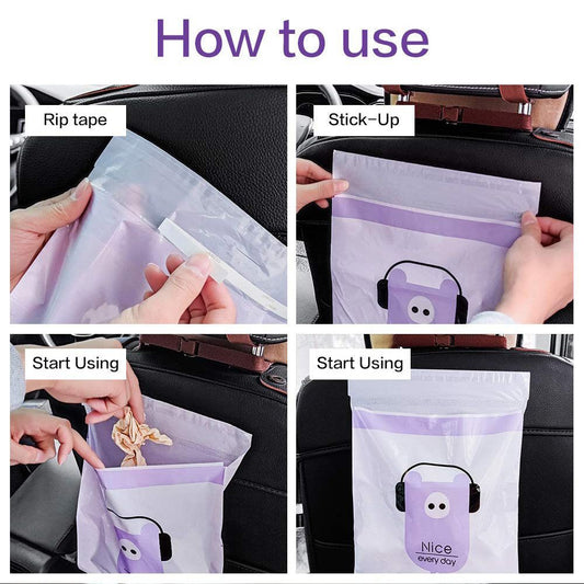 紫色【15個裝】汽車用垃圾袋 便攜黏貼垃圾袋 一次性垃圾膠袋 卡通掛式垃圾收納袋 環保清潔地球 多用途黏貼式垃圾袋 汽車清潔收納袋 封口垃圾袋
