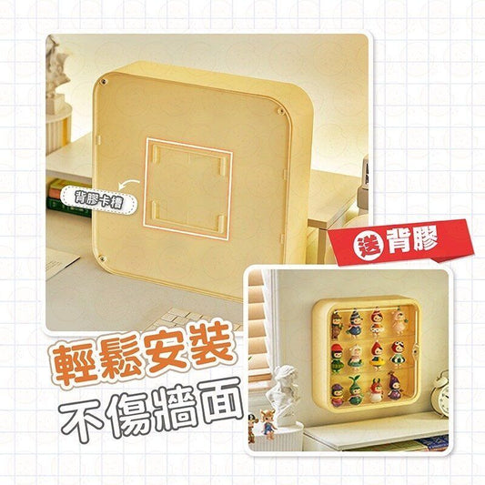 送背膠 壁掛展示收納盒 公仔展示盒 壁掛展示盒 模型展示架 汽車展示 玩具收納 模型收納盒 公仔收納盒 壁掛收納 無痕背膠壁掛玩偶收納展示架(奶白色/送背膠 ) 模型盒 架