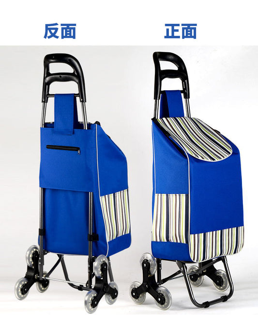 【**藏青條紋**】摺疊兩輪便攜式購物車 手拉車 買餸車 手推車 袋子可拆卸 環保手拉購物車