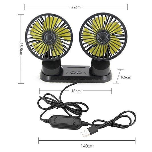 雙頭車用風扇360度 5V汽車USB接口 車用空氣清新機