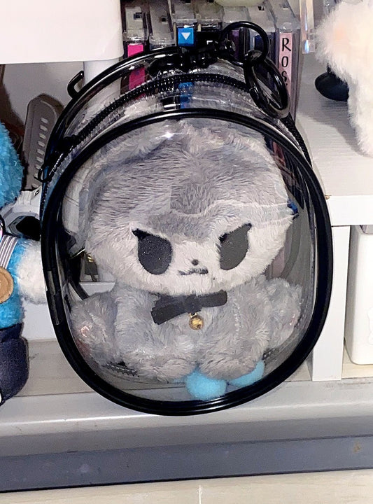 15cm以下可用!附掛扣 透明娃包|不易掉落 防塵防水|動漫卡通襟章吧唧Chiikawa毛公仔布偶盲盒手辦黏土人兒童小朋友玩具展示保護 旅行鎖匙鑰匙扣痛包痛袋娃包 普通收納袋(白邊款;附隨機顏色毛球