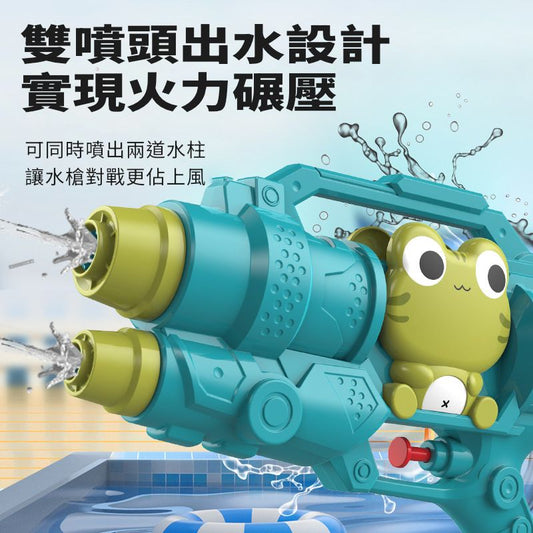 雙水柱!夏日清涼青蛙水槍|超遠射程 大容量 易操作 耐摔不漏水 雙噴頭出水設計 |兒童卡通水槍玩具 打水仗戲水吡水槍噴水槍玩具|夏天小朋友寶寶男孩女孩用 戶外沙灘/泳池/公園/洗澡沖涼/遊水游泳/度假