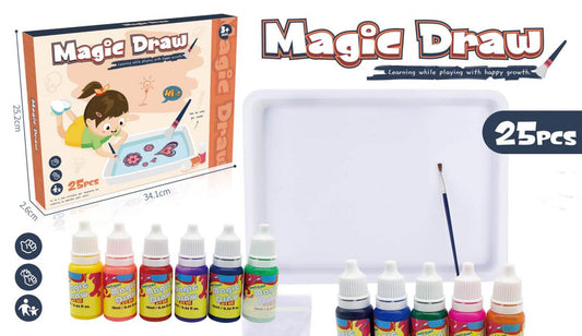 • 兒童水拓畫套裝 浮水畫濕拓畫 水浮畫 Marbling Paint diy材料 Magic Draw 魔術畫浮水畫套裝6色