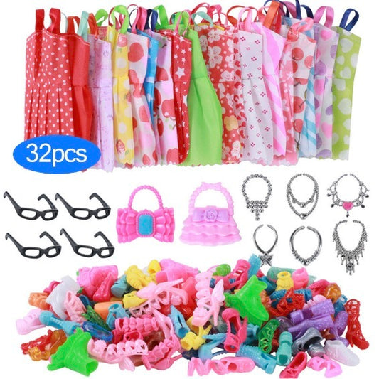 [32件套] 芭比娃娃 Barbie 衣服 鞋子 首飾 手袋 眼鏡 替換裝 DIY
