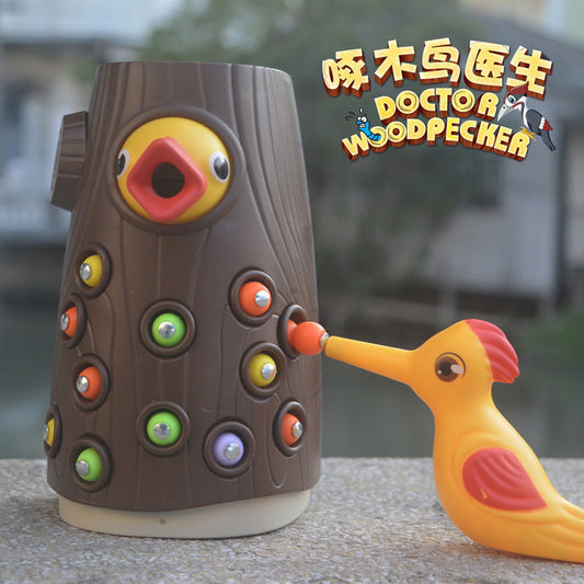 啄木鳥捉蟲遊戲益智男女孩兒童磁性釣魚玩具 大號棕色:樹墩+鳥+12蟲 其他玩具