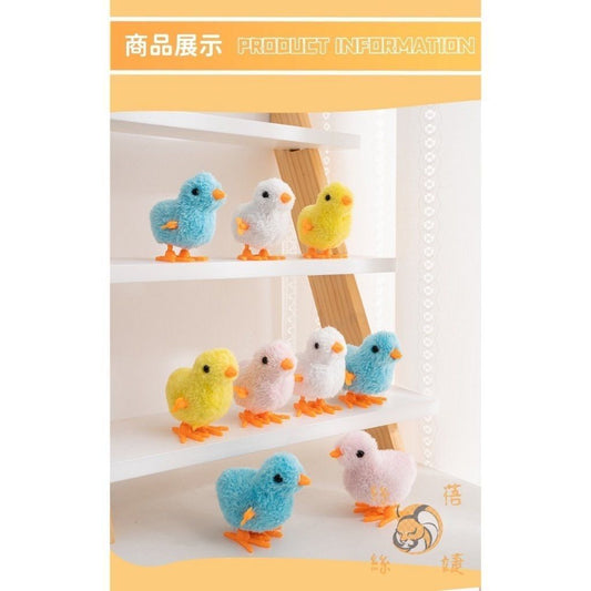 3隻 跳跳發條小雞 跳跳小雞 上鏈會跑 毛絨玩具 跳跳雞 上鏈玩具 仿真上鏈毛絨小雞玩具(隨機色/3個一套)