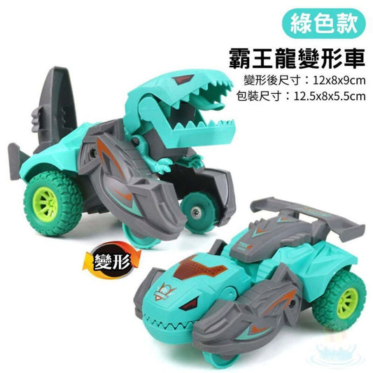 變形恐龍車 恐龍玩具 變形玩具 恐龍變形車 碰撞變形車 變形玩具車(藍色+紅色+黃色+綠色霸王龍 /4款一套)