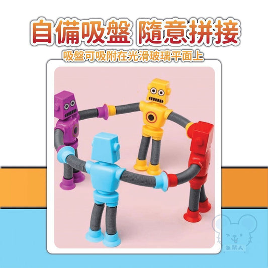 2個 伸縮機器人 吸盤機器人玩具 伸縮機器人 百變機器人 益智解壓玩具 舒壓玩具(黃色+紅色/2款一套