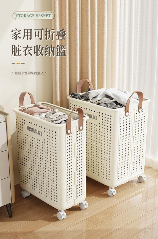日本熱銷 - (中號) 附滾輪洗衣籃 可摺疊式污衣籃 雜物雜誌玩具收納箱 髒衣籃 浴籃 收納桶