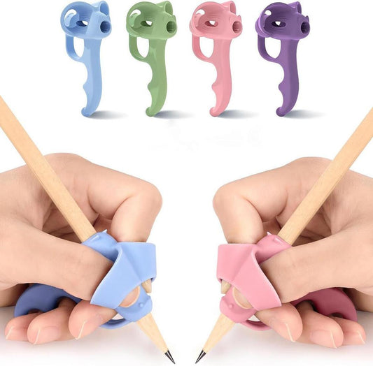 【預防手指畸形】兒童寫字姿勢矯正器 改善字跡 五指輔助握筆器 左右撇子適用練寫字糾正工具 幼稚園小朋友初學手指矽膠神器便攜鉛筆套(4個;顏色隨機)
