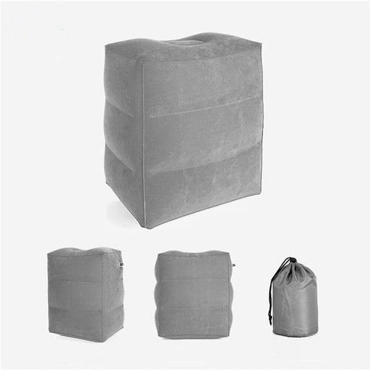 充氣三層腳墊 PVC植絨充氣旅行腳墊 充氣車載腳墊 可調節高度旅行飛機枕頭 適合飛機 兒童躺下或長途飛行睡覺 (灰色)