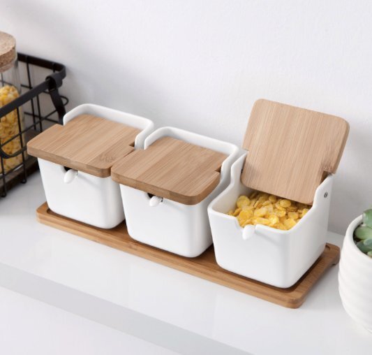 三個裝陶瓷調味盒 調味罐 調味料儲存容器 廚房用品