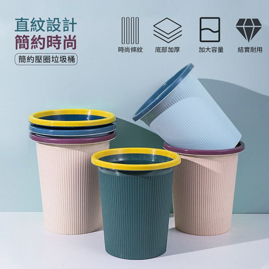 固定垃圾袋!日系撞色壓圈垃圾桶|加大容量 防垃圾袋滑落 厚實耐用 質感條紋|無蓋垃圾桶 北歐風塑膠家用客廳廚房廁所洗手間浴室辦公室書房睡房垃圾筒 垃圾簍(深藍色)