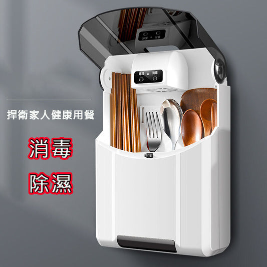 掛牆免打孔智能消毒筷子筒 風乾筷子架 瀝水除菌筷子架