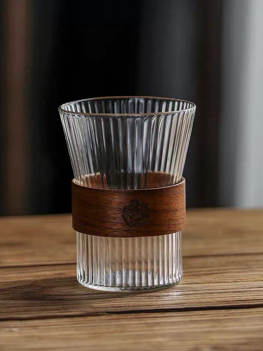 日式耐熱壓紋玻璃杯 日式透明玻璃水杯-豎紋杯+隔熱套 日式耐熱壓紋玻璃杯 水杯茶杯咖啡杯