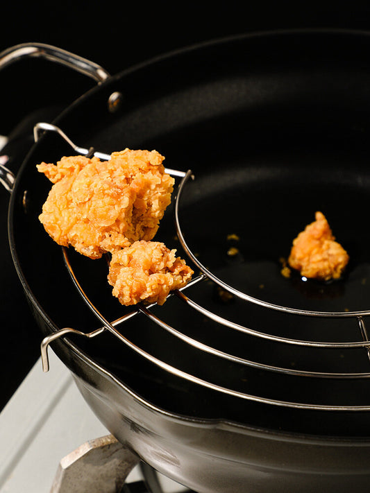 不銹鋼瀝油架家用炸油條鍋邊控油廚房炸鍋半圓形鍋邊省油架子-20cm 雙耳煲